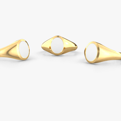 This gold women´s signet ring is a true work of art! This is our beautiful Evon 1 signet ring and it is set with a oval shape white enamel. In our crafting studio, we use a combination of the latest techniques and ancient traditional craftsmanship, so we are able to create a detailed perfect signet ring. Our expert goldsmiths are fascinated by signet rings. The signet ring can be engraved with initials or a family weapon. Signet rings with family weapons can be handed down from generation to generation and that usually is the case. On top of that, a signet ring is a beautiful, classy piece of jewelry which is trending once more. More than one reason to start or extend the tradition. Please browse our online database for more options on engravings. You can find the departments of our education center at the bottom of this page. Our goldsmiths passionately create your customized signet ring to your liking with the utmost care. The gold signet ring, as shown here, can be customized using our online tool. Feel free to ask our jewel designers for assistance if you want changes made which are unavailable in our online tool. We are happy to answer your questions.After receiving your order, our goldsmiths will passionately start the creative process of making your ring in our own studio. Because we don't have a big stockpile, these costs will not be passed on to you. Our pricing is proof of that! We offer top quality jewels at lowest price, guaranteed.To make it easier for you, we offer a 30 day return policy. Check our terms and conditions.