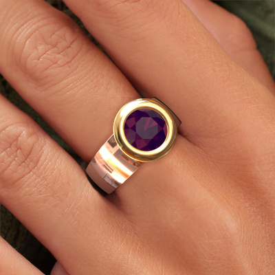 Are you looking for a elegant ring with an eye-catching single gemstone? How do you like this Maxime ring? This rose gold Maxime ring is set with a beautiful 8 mm round rhodolite. The rhodolite is carefully selected by our rhodolite suppliers. Subsequently, these gemstones are then set by our goldsmith according to ancient tradition. The ring will then be polished to perfection creating a unique ring with a stunning rhodolite. Created especially for you. How do you like this modern rose gold ring? Simply customize this Maxime ring, using our online tool. Subsequently, your personal elegant Maxime ring will be made by hand by our goldsmiths. Precious metals and gemstones can be customized to your liking. Do you have specific preferences which are unavailable in our online tool? Please feel free to contact us. We will customize your personal modern ring to your liking.Are you on a budget? Please feel free to contact us, so we can go discuss your options. We offer our rings at guaranteed best price, because we make them to order. You won't find such a price anywhere else!To make it easier for you, we offer a 30 day return policy. Check our terms and conditions.
