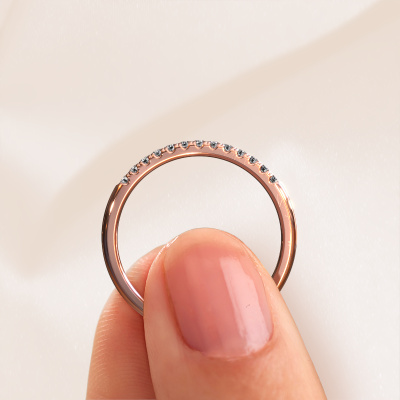 This SR10B6H stackable ring in 14 Carat rose gold is set with diamond. This rose gold stacked SR10B6H ring is the perfect addition to your ring collection! As the name suggests, it is a ring which can be combined on one finger with another ring. It gives you the opportunity to create your own style. A stacked ring usually represents a certain memory of someone special or a memorable moment. It is common to combine a stacked ring, representing an anniversary, with a wedding ring. But this affordable ring, combined with your other rings, also makes a classy fashion item. The affordable SR10B6H stackable ring, as shown here, can be customized to your liking. Our online tool offers many different options but please feel free to contact us if you want changes made to your SR10B6H stackable ring, which are unavailable in our online tool.After receiving your order, our goldsmiths will passionately start the creative process of making your ring in our own studio. Because we don't have a big stockpile, these costs will not be passed on to you. Our pricing is proof of that! We offer top quality jewels at lowest price, guaranteed.To make it easier for you, we offer a 30 day return policy. Check our terms and conditions.