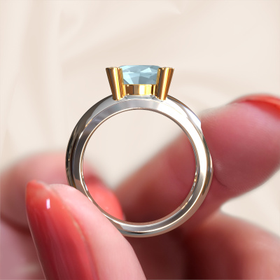Are you looking for a fashionable ring with an eye-catching single gemstone? How do you like this Tamara OVL ring? This white gold Tamara OVL ring is set with a beautiful 9x7 mm oval aquamarine. The aquamarine is carefully selected by our aquamarine suppliers. Subsequently, these gemstones are then set by our goldsmith according to ancient tradition. The ring will then be polished to perfection creating a unique ring with a stunning aquamarine. Created especially for you. A customized modern ring is the perfect gift! New exquisite designs are added daily by our team of passionate goldsmiths. And each design can be customized. Simply customize the precious metals and the color of gemstones which will be used, for example. This makes your design of the modern Tamara OVL ring truly unique!After receiving your order, our goldsmiths will start the creative process of making your Tamara OVL ring. We don't keep stock. This is advantageous because these costs will not be passed on to you. Therefore, we can offer jewelry at exceptionally low prices.To make it easier for you, we offer a 30 day return policy. Check our terms and conditions.