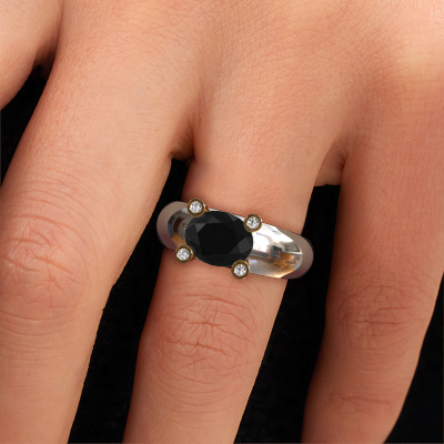 Are you looking for a fashionable ring with an eye-catching single gemstone? How do you like this Tamara OVL ring? This white gold Tamara OVL ring is set with a beautiful 2.16 crt oval black diamond. The black diamond is carefully selected by our black diamonds suppliers. Subsequently, these gemstones are then set by our goldsmith according to ancient tradition. The ring will then be polished to perfection creating a unique ring with a stunning black diamond. Created especially for you. A customized modern ring is the perfect gift! New exquisite designs are added daily by our team of passionate goldsmiths. And each design can be customized. Simply customize the precious metals and the color of gemstones which will be used, for example. This makes your design of the modern Tamara OVL ring truly unique!After receiving your order, our goldsmiths will start the creative process of making your Tamara OVL ring. We don't keep stock. This is advantageous because these costs will not be passed on to you. Therefore, we can offer jewelry at exceptionally low prices.To make it easier for you, we offer a 30 day return policy. Check our terms and conditions.