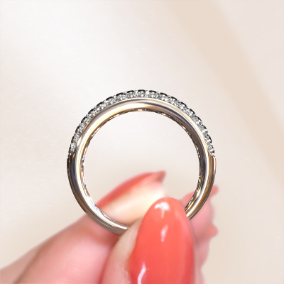This Emely 4 ring in platinum is set with black diamond. This platinum stacked Emely 4 ring is the perfect addition to your ring collection! As the name suggests, it is a ring which can be combined on one finger with another ring. It gives you the opportunity to create your own style. A stacked ring usually represents a certain memory of someone special or a memorable moment. It is common to combine a stacked ring, representing an anniversary, with a wedding ring. But this narrow ring, combined with your other rings, also makes a classy fashion item. As soon as you finished designing your Emely 4 ring with our online tool, our goldsmiths will start their creative process of making your ring. This will be done with passion and care, according ancient crafting. On top of that, our jewels are made of eco-friendly materials. Simply customize online with our online tool, if you want any changes made. If you want specific changes made to your Emely 4 ring, that are unavailable in our online tool, please feel free to contact our expert designers.By using a combination of the latest modern techniques, combined with ancient crafting, we can make all our rings in our own studio. Each jewel is made to order. This is advantageous because we can offer you a price you won't find anywhere else.To make it easier for you, we offer a 30 day return policy. Check our terms and conditions.