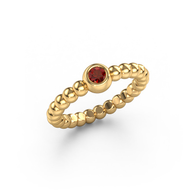 This Dini stackable ring in 14 Carat gold is set with garnet. This gold stacked Dini ring is the perfect addition to your ring collection! As the name suggests, it is a ring which can be combined on one finger with another ring. It gives you the opportunity to create your own style. A stacked ring usually represents a certain memory of someone special or a memorable moment. It is common to combine a stacked ring, representing an anniversary, with a wedding ring. But this orbs ring, combined with your other rings, also makes a classy fashion item. The best part of this orbs stackable ring is that you can customize it to your own liking. Your style, your choice, your stackable ring. On top of that, your trendy gold stackable ring will be made by hand with eco-friendly materials! Please feel free to easily customize the ring, using our online tool.After receiving your order, our goldsmiths will passionately start the creative process of making your ring in our own studio. Because we don't have a big stockpile, these costs will not be passed on to you. Our pricing is proof of that! We offer top quality jewels at lowest price, guaranteed.To make it easier for you, we offer a 30 day return policy. Check our terms and conditions.