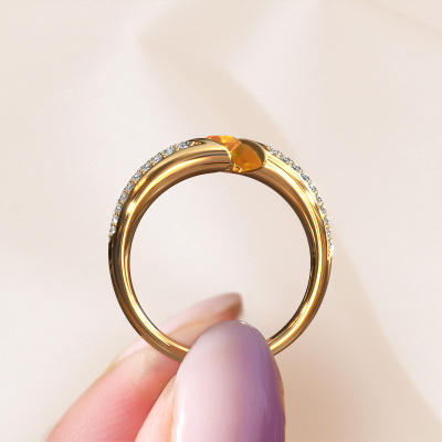 This exclusive gold Hojalien 3 ring is a true work of art! This ring is made of 14 Carat gold and is set with 4 mm round citrin. The smallest ornaments are crafted by our goldsmith with a lot of patience and great passion. In order to create this ring with great precision, this craft requires a keen eye and a skillful hand. A challenge which ignites a fire in our expert goldsmiths. The exquisite citrin are set in a way that their unique qualities are strengthened. This gives the ring an even more glamorous appearance. The ring is unique by itself though, because of the natural birthstones we selected especially for this Hojalien 3 ring. And by choosing the precious metal yourself, you create a unique ring. The best part of this pavé set ring is that you can customize it to your own liking. Your style, your choice, your ring. On top of that, your exclusive gold ring will be made by hand with eco-friendly materials! Please feel free to easily customize the ring, using our online tool.By using a combination of the latest modern techniques, combined with ancient crafting, we can make all our rings in our own studio. Each jewel is made to order. This is advantageous because we can offer you a price you won't find anywhere else.To make it easier for you, we offer a 30 day return policy. Check our terms and conditions.