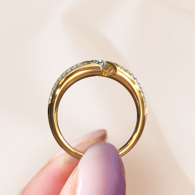 This exclusive gold Hojalien 3 ring is a true work of art! This ring is made of 14 Carat gold and is set with 4 mm round zirconia. The smallest ornaments are crafted by our goldsmith with a lot of patience and great passion. In order to create this ring with great precision, this craft requires a keen eye and a skillful hand. A challenge which ignites a fire in our expert goldsmiths. The exquisite cz-stones are set in a way that their unique qualities are strengthened. This gives the ring an even more glamorous appearance. The ring is unique by itself though, because of the natural birthstones we selected especially for this Hojalien 3 ring. And by choosing the precious metal yourself, you create a unique ring. The best part of this pavé set ring is that you can customize it to your own liking. Your style, your choice, your ring. On top of that, your exclusive gold ring will be made by hand with eco-friendly materials! Please feel free to easily customize the ring, using our online tool.By using a combination of the latest modern techniques, combined with ancient crafting, we can make all our rings in our own studio. Each jewel is made to order. This is advantageous because we can offer you a price you won't find anywhere else.To make it easier for you, we offer a 30 day return policy. Check our terms and conditions.