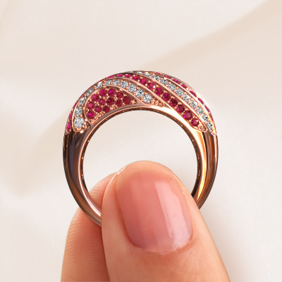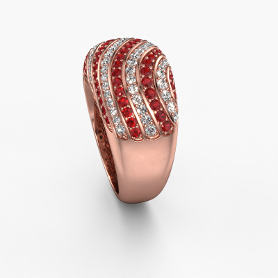 This exclusive rose gold Sonia ring is a true work of art! This ring is made of 14 Carat rose gold and is set with 1 mm round ruby. The smallest ornaments are crafted by our goldsmith with a lot of patience and great passion. In order to create this ring with great precision, this craft requires a keen eye and a skillful hand. A challenge which ignites a fire in our expert goldsmiths. The exquisite ruby are set in a way that their unique qualities are strengthened. This gives the ring an even more glamorous appearance. The ring is unique by itself though, because of the natural birthstones we selected especially for this Sonia ring. And by choosing the precious metal yourself, you create a unique ring. A customized luxury ring is the perfect gift! New exquisite designs are added daily by our team of passionate goldsmiths. And each design can be customized. Simply customize the precious metals and the color of gemstones which will be used, for example. This makes your design of the luxury sonia ring truly unique!After receiving your order, our goldsmiths will passionately start the creative process of making your ring in our own studio. Because we don't have a big stockpile, these costs will not be passed on to you. Our pricing is proof of that! We offer top quality jewels at lowest price, guaranteed.To make it easier for you, we offer a 30 day return policy. Check our terms and conditions.