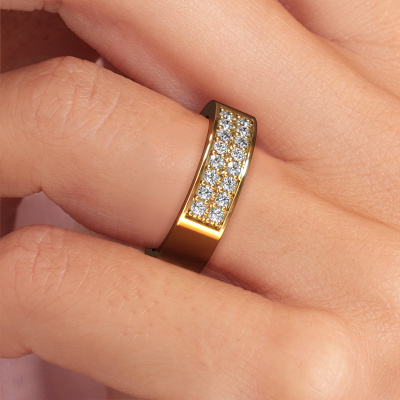 This ring called Catharina 5 is made of 14 Carat gold and is set with diamond. Are you in the market for a unique gold stackable ring with a modern twist? Then this ring might suit you. Simply customize to your or her liking. It suits the contemporary modern woman. This pavé set stackable ring is set with beautiful diamond. This has been carefully selected. Because your stackable ring must be adorned with nothing but the most stunning gemstone. Our expert goldsmith will create your ring in our own studio, where the diamond will be set with great care. The ring will then be polished to perfection to create a stunning ring. After receiving your order, our goldsmiths will passionately start the creative process of making your ring in our own studio. Because we don't have a big stockpile, these costs will not be passed on to you. Our pricing is proof of that! We offer top quality jewels at lowest price, guaranteed.New jewelry designs are added to our online collection daily. Our team of passionate designers strive to create extraordinary and diverse designs. Have you seen a ring you like? Please feel free to contact us. Based on a good price/ quality ratio, we will make you an offer you can't refuse!To make it easier for you, we offer a 30 day return policy. Check our terms and conditions.