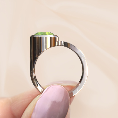 Are you looking for a special ring with an eye-catching single gemstone? How do you like this Nakia ring? This platinum Nakia ring is set with a beautiful 8 mm round peridot. The peridot is carefully selected by our peridot suppliers. Subsequently, these birthstones are then set by our goldsmith according to ancient tradition. The ring will then be polished to perfection creating a unique ring with a stunning peridot. Created especially for you. A customized design ring is the perfect gift! New exquisite designs are added daily by our team of passionate goldsmiths. And each design can be customized. Simply customize the precious metals and the color of gemstones which will be used, for example. This makes your design of the design Nakia ring truly unique!After receiving your order, our goldsmiths will passionately start the creative process of making your ring in our own studio. Because we don't have a big stockpile, these costs will not be passed on to you. Our pricing is proof of that! We offer top quality jewels at lowest price, guaranteed.To make it easier for you, we offer a 30 day return policy. Check our terms and conditions.