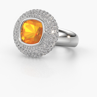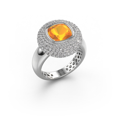 This exclusive platinum Keshia ring is a true work of art! This ring is made of platinum and is set with 8 mm cushion citrin. The smallest ornaments are crafted by our goldsmith with a lot of patience and great passion. In order to create this ring with great precision, this craft requires a keen eye and a skillful hand. A challenge which ignites a fire in our expert goldsmiths. The exquisite citrin are set in a way that their unique qualities are strengthened. This gives the ring an even more glamorous appearance. The ring is unique by itself though, because of the natural birthstones we selected especially for this Keshia ring. And by choosing the precious metal yourself, you create a unique ring. Our goldsmiths passionately create your customized ring to your liking with the utmost care. The platinum ring, as shown here, can be customized using our online tool. Feel free to ask our jewel designers for assistance if you want changes made which are unavailable in our online tool. We are happy to answer your questions.By using our modern techniques, we can design and customize the finest quality jewels with the utmost care for you. Our rings are always priced 30 percent lower than other jewelers. We make rings to order, so we don't have to maintain a large stock. If you have a certain budget, we are more than happy to advice you accordingly.To make it easier for you, we offer a 30 day return policy. Check our terms and conditions.