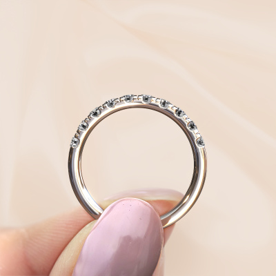 This ring is called Jackie Half. It is made of platinum and is set with 0.055 crt lab-grown diamond. Are you looking for a unique platinum stackable ring with a modern appearance? Then this is the ring for you. Simply customize to your or her liking. Perfect for a modern, contemporary woman! This half eternity stackable ring is adorned with stunning lab-grown diamond. It was carefully selected because your stackable ring must be adorned with nothing but the most beautiful gemstones. Our expert goldsmith will create your ring in our own studio, where the lab-grown diamond will be set with great care. The ring will then be polished to perfection to create a beautiful ring. After receiving your order, our goldsmiths will passionately start the creative process of making your ring in our own studio. Because we don't have a big stockpile, these costs will not be passed on to you. Our pricing is proof of that! We offer top quality jewels at lowest price, guaranteed.New jewelry designs are added to our online collection daily. Our team of passionate designers strive to create extraordinary and diverse designs. Have you seen a ring you like? Please feel free to contact us. Based on a good price/ quality ratio, we will make you an offer you can't refuse!To make it easier for you, we offer a 30 day return policy. Check our terms and conditions.