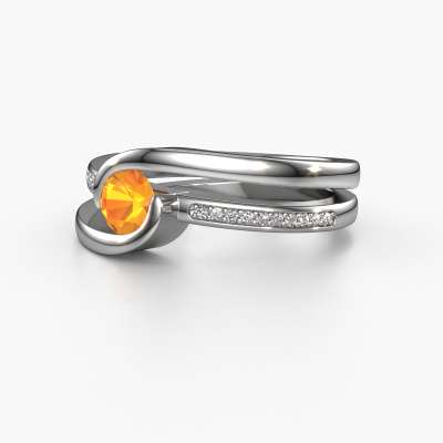 How would you describe your own style? Are you looking for something uniquely different? This graceful platinum Xenia 2 ring is astonishing! Simply customize to your or her own liking. This ring is set with citrin. These citrin have been carefully selected because your ring must be adorned with nothing but the most beautiful gemstone. Wouldn't you agree? Our expert goldsmith will create your ring in our own crafting studios, where the citrin will be set with care. The ring will then be polished to perfection to give it that extra sparkle. It's a perfect ring for a woman of excellent taste!How do you like this fantasy platinum ring? Simply customize this Xenia 2 ring, using our online tool. Subsequently, your personal graceful Xenia 2 ring will be made by hand by our goldsmiths. Precious metals and gemstones can be customized to your liking. Do you have specific preferences which are unavailable in our online tool? Please feel free to contact us. We will customize your personal fantasy ring to your liking.Are you on a budget? Please feel free to contact us, so we can go discuss your options. We offer our rings at guaranteed best price, because we make them to order. You won't find such a price anywhere else!To make it easier for you, we offer a 30 day return policy. Check our terms and conditions.