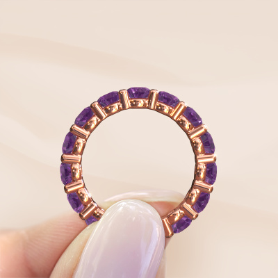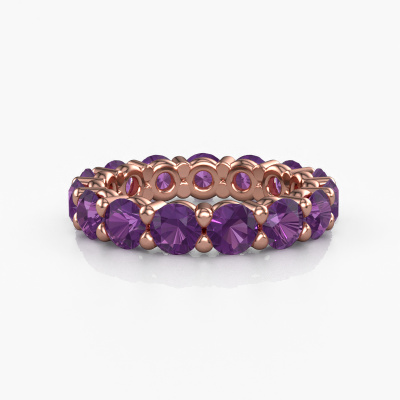 This exclusive rose gold Heddy rnd 4.2 ring is a true work of art! This ring is made of 14 Carat rose gold and is set with 4.2 mm round amethyst. The smallest ornaments are crafted by our goldsmith with a lot of patience and great passion. In order to create this ring with great precision, this craft requires a keen eye and a skillful hand. A challenge which ignites a fire in our expert goldsmiths. The exquisite amethysten are set in a way that their unique qualities are strengthened. This gives the ring an even more glamorous appearance. The ring is unique by itself though, because of the natural birthstones we selected especially for this Heddy rnd 4.2 ring. And by choosing the precious metal yourself, you create a unique ring. The best part of this eternity ring is that you can customize it to your own liking. Your style, your choice, your ring. On top of that, your exclusive rose gold ring will be made by hand with eco-friendly materials! Please feel free to easily customize the ring, using our online tool.After receiving your order, our goldsmiths will start the creative process of making your Heddy rnd 4.2 ring. We don't keep stock. This is advantageous because these costs will not be passed on to you. Therefore, we can offer jewelry at exceptionally low prices.To make it easier for you, we offer a 30 day return policy. Check our terms and conditions.