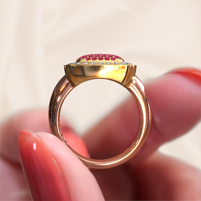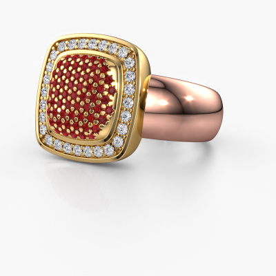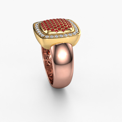 This ring is called Paige. It is made of 14 Carat rose gold and is set with 0.9 mm ruby. Are you looking for a unique rose gold ring with a modern appearance? Then this is the ring for you. Simply customize to your or her liking. Perfect for a modern, contemporary woman! This elegant ring is adorned with stunning ruby. It was carefully selected because your ring must be adorned with nothing but the most beautiful gemstones. Our expert goldsmith will create your ring in our own studio, where the ruby will be set with great care. The ring will then be polished to perfection to create a beautiful ring. After receiving your order, our goldsmiths will passionately start the creative process of making your ring in our own studio. Because we don't have a big stockpile, these costs will not be passed on to you. Our pricing is proof of that! We offer top quality jewels at lowest price, guaranteed.