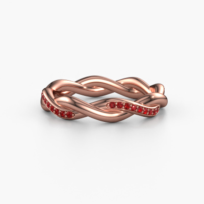 This ring is called Swing half. It is made of 14 Carat rose gold and is set with 1 mm ruby. Are you looking for a unique rose gold stackable ring with a modern appearance? Then this is the ring for you. Simply customize to your or her liking. Perfect for a modern, contemporary woman! This half eternity stackable ring is adorned with stunning ruby. It was carefully selected because your stackable ring must be adorned with nothing but the most beautiful gemstones. Our expert goldsmith will create your ring in our own studio, where the ruby will be set with great care. The ring will then be polished to perfection to create a beautiful ring. By using a combination of the latest modern techniques, combined with ancient crafting, we can make all our rings in our own studio. Each jewel is made to order. This is advantageous because we can offer you a price you won't find anywhere else.New jewelry designs are added to our online collection daily. Our team of passionate designers strive to create extraordinary and diverse designs. Have you seen a ring you like? Please feel free to contact us. Based on a good price/ quality ratio, we will make you an offer you can't refuse!To make it easier for you, we offer a 30 day return policy. Check our terms and conditions.
