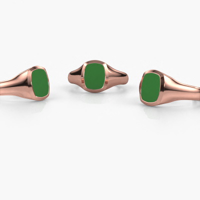 This rose gold women´s signet ring is a true work of art! This is our elegant Zelda signet ring and it is set with a rectangle antique green enamel. In our crafting studio, we use a combination of the latest techniques and ancient traditional craftsmanship, so we are able to create a detailed perfect signet ring. Our expert goldsmiths are fascinated by signet rings. The signet ring can be engraved with initials or a family weapon. Signet rings with family weapons can be handed down from generation to generation and that usually is the case. On top of that, a signet ring is a beautiful, classy piece of jewelry which is trending once more. More than one reason to start or extend the tradition. Please browse our online database for more options on engravings. You can find the departments of our education center at the bottom of this page. Customize your own elegantZelda signet ring, which will then be created by our goldsmiths with great passion. Do you prefer a different option than is shown here in the rose gold Zelda signet ring? Then our online tools offers various options. Feel free to ask us for help if you are unable to succeed. We are happy to answer your questions!After receiving your order, our goldsmiths will passionately start the creative process of making your ring in our own studio. Because we don't have a big stockpile, these costs will not be passed on to you. Our pricing is proof of that! We offer top quality jewels at lowest price, guaranteed.To make it easier for you, we offer a 30 day return policy. Check our terms and conditions.