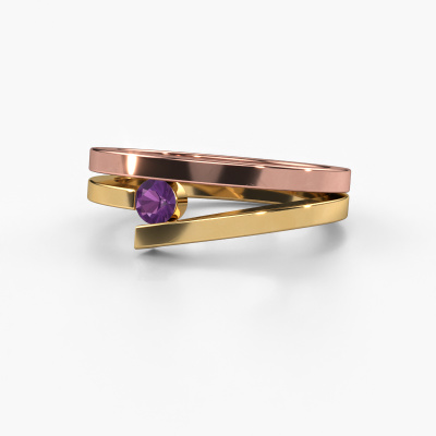 How would you describe your own style? Are you looking for something uniquely different? This fantasy rose gold Nikia ring is astonishing! Simply customize to your or her own liking. This ring is set with amethyst. These amethysten have been carefully selected because your ring must be adorned with nothing but the most beautiful gemstone. Wouldn't you agree? Our expert goldsmith will create your ring in our own crafting studios, where the amethyst will be set with care. The ring will then be polished to perfection to give it that extra sparkle. It's a perfect ring for a woman of excellent taste!A customized modern ring is the perfect gift! New exquisite designs are added daily by our team of passionate goldsmiths. And each design can be customized. Simply customize the precious metals and the color of gemstones which will be used, for example. This makes your design of the modern Nikia ring truly unique!By using a combination of the latest modern techniques, combined with ancient crafting, we can make all our rings in our own studio. Each jewel is made to order. This is advantageous because we can offer you a price you won't find anywhere else.To make it easier for you, we offer a 30 day return policy. Check our terms and conditions.