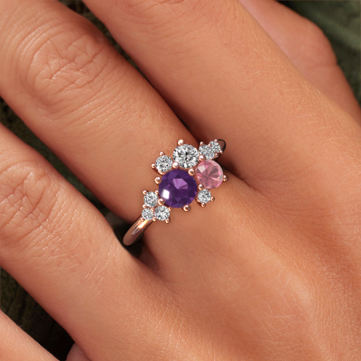 How would you describe your own style? Are you looking for something uniquely different? This graceful rose gold Veronica ring is astonishing! Simply customize to your or her own liking. This ring is set with amethyst. These amethysten have been carefully selected because your ring must be adorned with nothing but the most beautiful gemstone. Wouldn't you agree? Our expert goldsmith will create your ring in our own crafting studios, where the amethyst will be set with care. The ring will then be polished to perfection to give it that extra sparkle. It's a perfect ring for a woman of excellent taste!Customize your own gracefulVeronica ring, which will then be created by our goldsmiths with great passion. Do you prefer a different option than is shown here in the rose gold Veronica ring? Then our online tools offers various options. Feel free to ask us for help if you are unable to succeed. We are happy to answer your questions!By using our modern techniques, we can design and customize the finest quality jewels with the utmost care for you. Our rings are always priced 30 percent lower than other jewelers. We make rings to order, so we don't have to maintain a large stock. If you have a certain budget, we are more than happy to advice you accordingly.To make it easier for you, we offer a 30 day return policy. Check our terms and conditions.