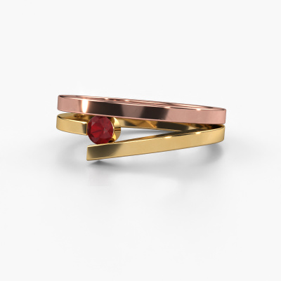 How would you describe your own style? Are you looking for something uniquely different? This fantasy rose gold Nikia ring is astonishing! Simply customize to your or her own liking. This ring is set with ruby. These ruby have been carefully selected because your ring must be adorned with nothing but the most beautiful gemstone. Wouldn't you agree? Our expert goldsmith will create your ring in our own crafting studios, where the ruby will be set with care. The ring will then be polished to perfection to give it that extra sparkle. It's a perfect ring for a woman of excellent taste!A customized modern ring is the perfect gift! New exquisite designs are added daily by our team of passionate goldsmiths. And each design can be customized. Simply customize the precious metals and the color of gemstones which will be used, for example. This makes your design of the modern Nikia ring truly unique!By using a combination of the latest modern techniques, combined with ancient crafting, we can make all our rings in our own studio. Each jewel is made to order. This is advantageous because we can offer you a price you won't find anywhere else.To make it easier for you, we offer a 30 day return policy. Check our terms and conditions.
