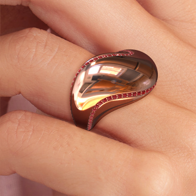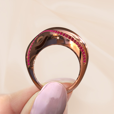 This is a stunning tasteful rose gold Phyliss ring. It is set with ruby. A designer ring, fit for classy women. The ring is designed by our own expert goldsmiths. In our artisan studio, we use a combination of the latest techniques and ancient traditional craftsmanship, so we are able to create a perfectly designed ring. Our expert goldsmiths strive for perfection so they won't stop until a perfect ring, a true work of art, is created. A unique ring which matches your own style. The best part of this tasteful ring is that you can customize it to your own liking. Your style, your choice, your ring. On top of that, your design rose gold ring will be made by hand with eco-friendly materials! Please feel free to easily customize the ring, using our online tool.After receiving your order, our goldsmiths will passionately start the creative process of making your ring in our own studio. Because we don't have a big stockpile, these costs will not be passed on to you. Our pricing is proof of that! We offer top quality jewels at lowest price, guaranteed.To make it easier for you, we offer a 30 day return policy. Check our terms and conditions.