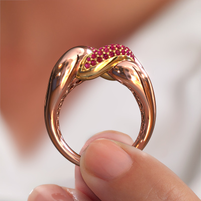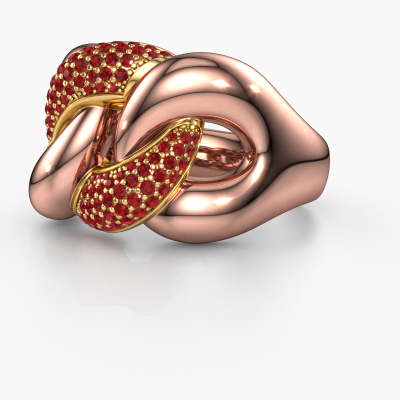 This exclusive rose gold Kylie 2 15mm ring is a true work of art! This ring is made of 14 Carat rose gold and is set with 0.8 mm round ruby. The smallest ornaments are crafted by our goldsmith with a lot of patience and great passion. In order to create this ring with great precision, this craft requires a keen eye and a skillful hand. A challenge which ignites a fire in our expert goldsmiths. The exquisite ruby are set in a way that their unique qualities are strengthened. This gives the ring an even more glamorous appearance. The ring is unique by itself though, because of the natural birthstones we selected especially for this Kylie 2 15mm ring. And by choosing the precious metal yourself, you create a unique ring. The best part of this beautiful ring is that you can customize it to your own liking. Your style, your choice, your ring. On top of that, your design rose gold ring will be made by hand with eco-friendly materials! Please feel free to easily customize the ring, using our online tool.After receiving your order, our goldsmiths will start the creative process of making your Kylie 2 15mm ring. We don't keep stock. This is advantageous because these costs will not be passed on to you. Therefore, we can offer jewelry at exceptionally low prices.To make it easier for you, we offer a 30 day return policy. Check our terms and conditions.