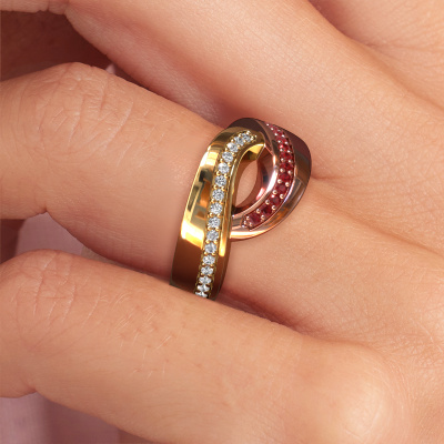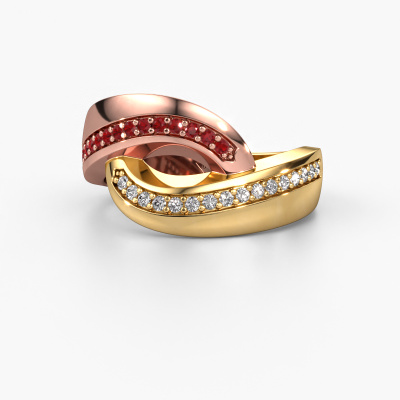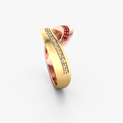 This exclusive rose gold Sharita ring is a true work of art! This ring is made of 14 Carat rose gold and is set with 1.2 mm round ruby. The smallest ornaments are crafted by our goldsmith with a lot of patience and great passion. In order to create this ring with great precision, this craft requires a keen eye and a skillful hand. A challenge which ignites a fire in our expert goldsmiths. The exquisite ruby are set in a way that their unique qualities are strengthened. This gives the ring an even more glamorous appearance. The ring is unique by itself though, because of the natural birthstones we selected especially for this Sharita ring. And by choosing the precious metal yourself, you create a unique ring. Our goldsmiths passionately create your customized ring to your liking with the utmost care. The rose gold ring, as shown here, can be customized using our online tool. Feel free to ask our jewel designers for assistance if you want changes made which are unavailable in our online tool. We are happy to answer your questions.After receiving your order, our goldsmiths will start the creative process of making your Sharita ring. We don't keep stock. This is advantageous because these costs will not be passed on to you. Therefore, we can offer jewelry at exceptionally low prices.To make it easier for you, we offer a 30 day return policy. Check our terms and conditions.