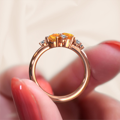 How would you describe your own style? Are you looking for something uniquely different? This royal rose gold Anja ring is astonishing! Simply customize to your or her own liking. This ring is set with citrin. These citrin have been carefully selected because your ring must be adorned with nothing but the most beautiful gemstone. Wouldn't you agree? Our expert goldsmith will create your ring in our own crafting studios, where the citrin will be set with care. The ring will then be polished to perfection to give it that extra sparkle. It's a perfect ring for a woman of excellent taste!The royal Anja ring, as shown here, can be customized to your liking. Our online tool offers many different options but please feel free to contact us if you want changes made to your Anja ring, which are unavailable in our online tool.By using a combination of the latest modern techniques, combined with ancient crafting, we can make all our rings in our own studio. Each jewel is made to order. This is advantageous because we can offer you a price you won't find anywhere else.To make it easier for you, we offer a 30 day return policy. Check our terms and conditions.