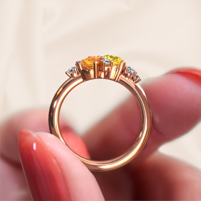 How would you describe your own style? Are you looking for something uniquely different? This royal rose gold Anja ring is astonishing! Simply customize to your or her own liking. This ring is set with yellow sapphire. These yellow sapphire have been carefully selected because your ring must be adorned with nothing but the most beautiful gemstone. Wouldn't you agree? Our expert goldsmith will create your ring in our own crafting studios, where the yellow sapphire will be set with care. The ring will then be polished to perfection to give it that extra sparkle. It's a perfect ring for a woman of excellent taste!The royal Anja ring, as shown here, can be customized to your liking. Our online tool offers many different options but please feel free to contact us if you want changes made to your Anja ring, which are unavailable in our online tool.By using a combination of the latest modern techniques, combined with ancient crafting, we can make all our rings in our own studio. Each jewel is made to order. This is advantageous because we can offer you a price you won't find anywhere else.To make it easier for you, we offer a 30 day return policy. Check our terms and conditions.