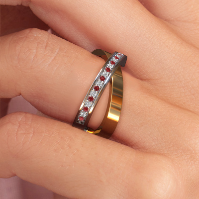 Because of its detailed finish, this wide ring with ruby has a stylish appearance. A elegant ring that fits the contemporary woman like a glove. This white gold ring, our Julie, is a true eye-catcher indeed! As soon as we know what you desire, we will create your ring in our own crafting studio. We work according an innovative process. We use a combination of the latest techniques and ancient traditional craftsmanship, so we are able to create a perfectly designed ring. Our expert goldsmiths strive for perfection so they won't stop until a perfect ring, a true work of art, is created especially for you!The elegant Julie ring, as shown here, can be customized to your liking. Our online tool offers many different options but please feel free to contact us if you want changes made to your Julie ring, which are unavailable in our online tool.Are you on a budget? Please feel free to contact us, so we can go discuss your options. We offer our rings at guaranteed best price, because we make them to order. You won't find such a price anywhere else!To make it easier for you, we offer a 30 day return policy. Check our terms and conditions.