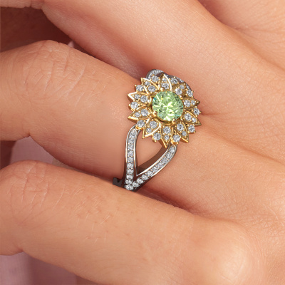 How would you describe your own style? Are you looking for something uniquely different? This special white gold Chasidy 2 ring is astonishing! Simply customize to your or her own liking. This ring is set with green lab grown diamond. These green lab grown diamondd have been carefully selected because your ring must be adorned with nothing but the most beautiful gemstone. Wouldn't you agree? Our expert goldsmith will create your ring in our own crafting studios, where the green lab grown diamond will be set with care. The ring will then be polished to perfection to give it that extra sparkle. It's a perfect ring for a woman of excellent taste!The best part of this special ring is that you can customize it to your own liking. Your style, your choice, your ring. On top of that, your traditional white gold ring will be made by hand with eco-friendly materials! Please feel free to easily customize the ring, using our online tool.By using a combination of the latest modern techniques, combined with ancient crafting, we can make all our rings in our own studio. Each jewel is made to order. This is advantageous because we can offer you a price you won't find anywhere else.To make it easier for you, we offer a 30 day return policy. Check our terms and conditions.