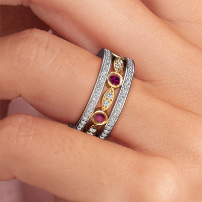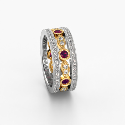 Do you have a vintage fetish? Then this white gold Jessica ring suits you perfectly. It's a contemporary design, based on vintage designs. A slightly romantic, extraordinary design! Even more when you customize to your liking. This special ring is set with exquisite rhodolite. As you can see, you can simply choose a gemstone that matches your style. Each gemstone is carefully selected by our merchants whom are spread throughout the world. Nothing but the best gems for our expert goldsmith! After all, it is his crowning glory!The special Jessica ring, as shown here, can be customized to your liking. Our online tool offers many different options but please feel free to contact us if you want changes made to your Jessica ring, which are unavailable in our online tool.Because we design and deliver our own rings, we can offer you a ring at a price you won't find anywhere else. A ring is made to order, which helps prevent excess supplies, so we can make you a great price offer. We understand it feels risky, buying your ring online, but we will gladly assist in the designing process, taking your budget into consideration.To make it easier for you, we offer a 30 day return policy. Check our terms and conditions.