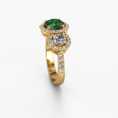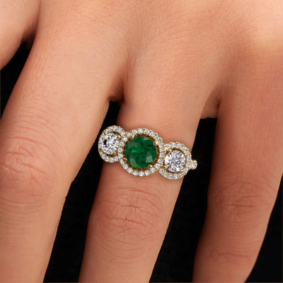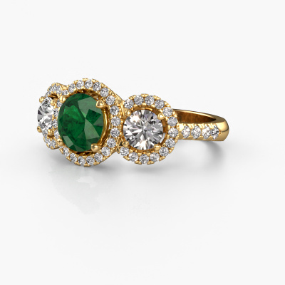 This exclusive gold Lacie ring is a true work of art! This ring is made of 14 Carat gold and is set with 6.5 mm round emerald. The smallest ornaments are crafted by our goldsmith with a lot of patience and great passion. In order to create this ring with great precision, this craft requires a keen eye and a skillful hand. A challenge which ignites a fire in our expert goldsmiths. The exquisite emeralds are set in a way that their unique qualities are strengthened. This gives the ring an even more glamorous appearance. The ring is unique by itself though, because of the natural birthstones we selected especially for this Lacie ring. And by choosing the precious metal yourself, you create a unique ring. Customize your own specialLacie ring, which will then be created by our goldsmiths with great passion. Do you prefer a different option than is shown here in the gold Lacie ring? Then our online tools offers various options. Feel free to ask us for help if you are unable to succeed. We are happy to answer your questions!Because we design and deliver our own rings, we can offer you a ring at a price you won't find anywhere else. A ring is made to order, which helps prevent excess supplies, so we can make you a great price offer. We understand it feels risky, buying your ring online, but we will gladly assist in the designing process, taking your budget into consideration.To make it easier for you, we offer a 30 day return policy. Check our terms and conditions.