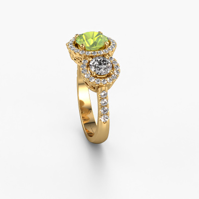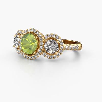 This exclusive gold Lacie ring is a true work of art! This ring is made of 14 Carat gold and is set with 6.5 mm round peridot. The smallest ornaments are crafted by our goldsmith with a lot of patience and great passion. In order to create this ring with great precision, this craft requires a keen eye and a skillful hand. A challenge which ignites a fire in our expert goldsmiths. The exquisite peridot are set in a way that their unique qualities are strengthened. This gives the ring an even more glamorous appearance. The ring is unique by itself though, because of the natural birthstones we selected especially for this Lacie ring. And by choosing the precious metal yourself, you create a unique ring. Customize your own specialLacie ring, which will then be created by our goldsmiths with great passion. Do you prefer a different option than is shown here in the gold Lacie ring? Then our online tools offers various options. Feel free to ask us for help if you are unable to succeed. We are happy to answer your questions!Because we design and deliver our own rings, we can offer you a ring at a price you won't find anywhere else. A ring is made to order, which helps prevent excess supplies, so we can make you a great price offer. We understand it feels risky, buying your ring online, but we will gladly assist in the designing process, taking your budget into consideration.To make it easier for you, we offer a 30 day return policy. Check our terms and conditions.