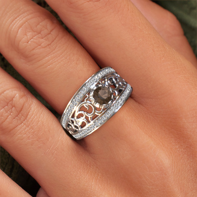 Do you have a vintage fetish? Then this platinum Marilee ring suits you perfectly. It's a contemporary design, based on vintage designs. A slightly romantic, extraordinary design! Even more when you customize to your liking. This special ring is set with exquisite smokey quartz. As you can see, you can simply choose a gemstone that matches your style. Each gemstone is carefully selected by our merchants whom are spread throughout the world. Nothing but the best gems for our expert goldsmith! After all, it is his crowning glory!A customized vintage ring is the perfect gift! New exquisite designs are added daily by our team of passionate goldsmiths. And each design can be customized. Simply customize the precious metals and the color of gemstones which will be used, for example. This makes your design of the vintage Marilee ring truly unique!After receiving your order, our goldsmiths will passionately start the creative process of making your ring in our own studio. Because we don't have a big stockpile, these costs will not be passed on to you. Our pricing is proof of that! We offer top quality jewels at lowest price, guaranteed.To make it easier for you, we offer a 30 day return policy. Check our terms and conditions.