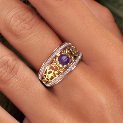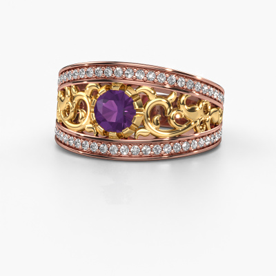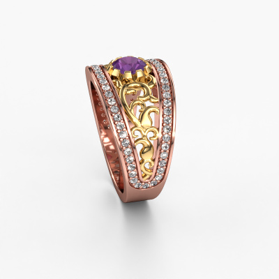 Do you have a vintage fetish? Then this rose gold Marilee ring suits you perfectly. It's a contemporary design, based on vintage designs. A slightly romantic, extraordinary design! Even more when you customize to your liking. This special ring is set with exquisite amethysten. As you can see, you can simply choose a gemstone that matches your style. Each gemstone is carefully selected by our merchants whom are spread throughout the world. Nothing but the best gems for our expert goldsmith! After all, it is his crowning glory!A customized vintage ring is the perfect gift! New exquisite designs are added daily by our team of passionate goldsmiths. And each design can be customized. Simply customize the precious metals and the color of gemstones which will be used, for example. This makes your design of the vintage Marilee ring truly unique!After receiving your order, our goldsmiths will passionately start the creative process of making your ring in our own studio. Because we don't have a big stockpile, these costs will not be passed on to you. Our pricing is proof of that! We offer top quality jewels at lowest price, guaranteed.To make it easier for you, we offer a 30 day return policy. Check our terms and conditions.