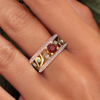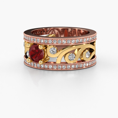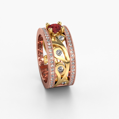 Do you have a vintage fetish? Then this rose gold Sanne ring suits you perfectly. It's a contemporary design, based on vintage designs. A slightly romantic, extraordinary design! Even more when you customize to your liking. This special ring is set with exquisite ruby. As you can see, you can simply choose a gemstone that matches your style. Each gemstone is carefully selected by our merchants whom are spread throughout the world. Nothing but the best gems for our expert goldsmith! After all, it is his crowning glory!Customize your own specialSanne ring, which will then be created by our goldsmiths with great passion. Do you prefer a different option than is shown here in the rose gold Sanne ring? Then our online tools offers various options. Feel free to ask us for help if you are unable to succeed. We are happy to answer your questions!After receiving your order, our goldsmiths will start the creative process of making your Sanne ring. We don't keep stock. This is advantageous because these costs will not be passed on to you. Therefore, we can offer jewelry at exceptionally low prices.To make it easier for you, we offer a 30 day return policy. Check our terms and conditions.