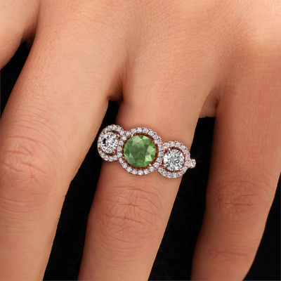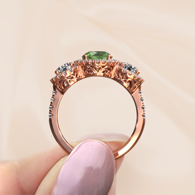 This exclusive rose gold Lacie ring is a true work of art! This ring is made of 14 Carat rose gold and is set with 6.5 mm round tourmaline green. The smallest ornaments are crafted by our goldsmith with a lot of patience and great passion. In order to create this ring with great precision, this craft requires a keen eye and a skillful hand. A challenge which ignites a fire in our expert goldsmiths. The exquisite tourmaline green are set in a way that their unique qualities are strengthened. This gives the ring an even more glamorous appearance. The ring is unique by itself though, because of the natural birthstones we selected especially for this Lacie ring. And by choosing the precious metal yourself, you create a unique ring. Customize your own specialLacie ring, which will then be created by our goldsmiths with great passion. Do you prefer a different option than is shown here in the rose gold Lacie ring? Then our online tools offers various options. Feel free to ask us for help if you are unable to succeed. We are happy to answer your questions!Because we design and deliver our own rings, we can offer you a ring at a price you won't find anywhere else. A ring is made to order, which helps prevent excess supplies, so we can make you a great price offer. We understand it feels risky, buying your ring online, but we will gladly assist in the designing process, taking your budget into consideration.To make it easier for you, we offer a 30 day return policy. Check our terms and conditions.