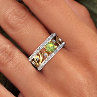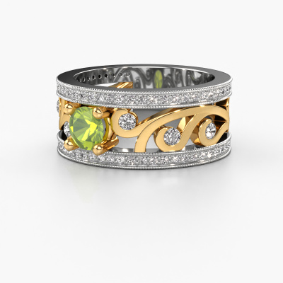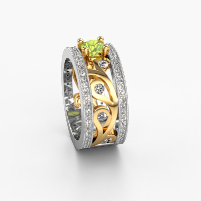 Do you have a vintage fetish? Then this white gold Sanne ring suits you perfectly. It's a contemporary design, based on vintage designs. A slightly romantic, extraordinary design! Even more when you customize to your liking. This special ring is set with exquisite peridot. As you can see, you can simply choose a gemstone that matches your style. Each gemstone is carefully selected by our merchants whom are spread throughout the world. Nothing but the best gems for our expert goldsmith! After all, it is his crowning glory!Customize your own specialSanne ring, which will then be created by our goldsmiths with great passion. Do you prefer a different option than is shown here in the white gold Sanne ring? Then our online tools offers various options. Feel free to ask us for help if you are unable to succeed. We are happy to answer your questions!After receiving your order, our goldsmiths will start the creative process of making your Sanne ring. We don't keep stock. This is advantageous because these costs will not be passed on to you. Therefore, we can offer jewelry at exceptionally low prices.To make it easier for you, we offer a 30 day return policy. Check our terms and conditions.