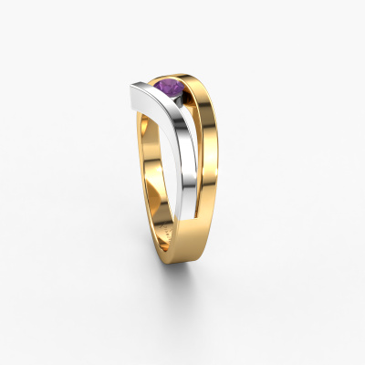 This ring called Evalyn 1 is made of 14 Carat gold and is set with amethyst. Are you in the market for a unique gold ring with a modern twist? Then this ring might suit you. Simply customize to your or her liking. It suits the contemporary modern woman. This stylish ring is set with beautiful amethyst. This has been carefully selected. Because your ring must be adorned with nothing but the most stunning gemstone. Our expert goldsmith will create your ring in our own studio, where the amethyst will be set with great care. The ring will then be polished to perfection to create a stunning ring. By using a combination of the latest modern techniques, combined with ancient crafting, we can make all our rings in our own studio. Each jewel is made to order. This is advantageous because we can offer you a price you won't find anywhere else.New jewelry designs are added to our online collection daily. Our team of passionate designers strive to create extraordinary and diverse designs. Have you seen a ring you like? Please feel free to contact us. Based on a good price/ quality ratio, we will make you an offer you can't refuse!To make it easier for you, we offer a 30 day return policy. Check our terms and conditions.