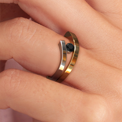 This ring called Evalyn 1 is made of 14 Carat gold and is set with black diamond. Are you in the market for a unique gold ring with a modern twist? Then this ring might suit you. Simply customize to your or her liking. It suits the contemporary modern woman. This stylish ring is set with beautiful black diamond. This has been carefully selected. Because your ring must be adorned with nothing but the most stunning gemstone. Our expert goldsmith will create your ring in our own studio, where the black diamond will be set with great care. The ring will then be polished to perfection to create a stunning ring. By using a combination of the latest modern techniques, combined with ancient crafting, we can make all our rings in our own studio. Each jewel is made to order. This is advantageous because we can offer you a price you won't find anywhere else.New jewelry designs are added to our online collection daily. Our team of passionate designers strive to create extraordinary and diverse designs. Have you seen a ring you like? Please feel free to contact us. Based on a good price/ quality ratio, we will make you an offer you can't refuse!To make it easier for you, we offer a 30 day return policy. Check our terms and conditions.