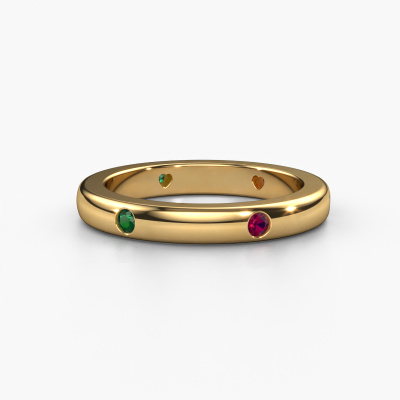 This Charla stackable ring in 14 Carat gold is set with emerald. This gold stacked Charla ring is the perfect addition to your ring collection! As the name suggests, it is a ring which can be combined on one finger with another ring. It gives you the opportunity to create your own style. A stacked ring usually represents a certain memory of someone special or a memorable moment. It is common to combine a stacked ring, representing an anniversary, with a wedding ring. But this symbolic ring, combined with your other rings, also makes a classy fashion item. The best part of this symbolic stackable ring is that you can customize it to your own liking. Your style, your choice, your stackable ring. On top of that, your trendy gold stackable ring will be made by hand with eco-friendly materials! Please feel free to easily customize the ring, using our online tool.By using a combination of the latest modern techniques, combined with ancient crafting, we can make all our rings in our own studio. Each jewel is made to order. This is advantageous because we can offer you a price you won't find anywhere else.To make it easier for you, we offer a 30 day return policy. Check our terms and conditions.