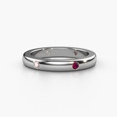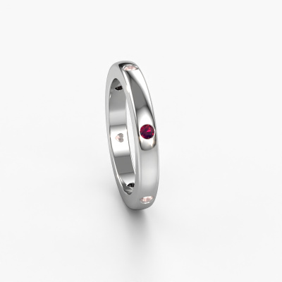 This Charla stackable ring in platinum is set with morganite champagne. This platinum stacked Charla ring is the perfect addition to your ring collection! As the name suggests, it is a ring which can be combined on one finger with another ring. It gives you the opportunity to create your own style. A stacked ring usually represents a certain memory of someone special or a memorable moment. It is common to combine a stacked ring, representing an anniversary, with a wedding ring. But this symbolic ring, combined with your other rings, also makes a classy fashion item.