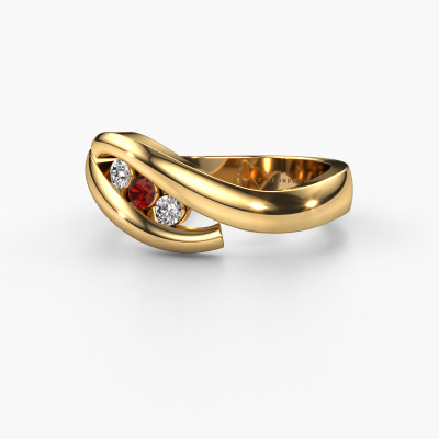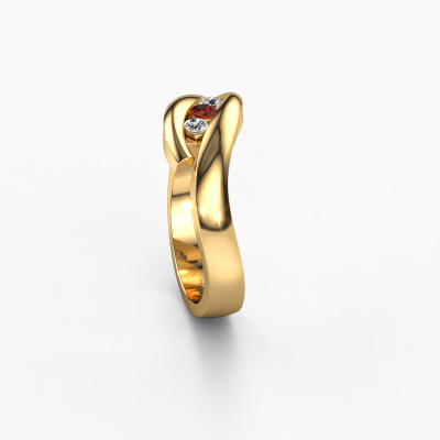 This ring called Ilene is made of 14 Carat gold and is set with garnet. Are you in the market for a unique gold ring with a modern twist? Then this ring might suit you. Simply customize to your or her liking. It suits the contemporary modern woman. This tasteful ring is set with beautiful garnet. This has been carefully selected. Because your ring must be adorned with nothing but the most stunning gemstone. Our expert goldsmith will create your ring in our own studio, where the garnet will be set with great care. The ring will then be polished to perfection to create a stunning ring. Are you on a budget? Please feel free to contact us, so we can go discuss your options. We offer our rings at guaranteed best price, because we make them to order. You won't find such a price anywhere else!Our team of talented, passionate designers add new ring designs to our online collection daily. Our objective in doing so, is to be able to offer you a wide variety of jewels. Please feel free to request a quote if you have specific wishes for your ring. We guarantee to make you an offer you can't refuse.To make it easier for you, we offer a 30 day return policy. Check our terms and conditions.