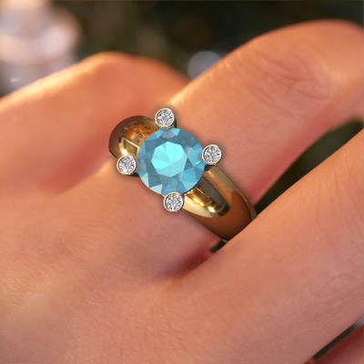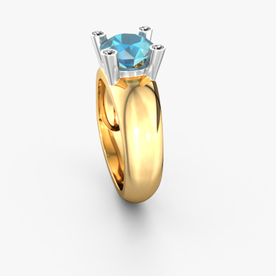 Are you looking for a special ring with an eye-catching single gemstone? How do you like this Tamara RND ring? This gold Tamara RND ring is set with a beautiful 8 mm round blue topaz. The blue topaz is carefully selected by our blue topaz suppliers. Subsequently, these gemstones are then set by our goldsmith according to ancient tradition. The ring will then be polished to perfection creating a unique ring with a stunning blue topaz. Created especially for you. The best part of this special ring is that you can customize it to your own liking. Your style, your choice, your ring. On top of that, your trendy gold ring will be made by hand with eco-friendly materials! Please feel free to easily customize the ring, using our online tool.By using a combination of the latest modern techniques, combined with ancient crafting, we can make all our rings in our own studio. Each jewel is made to order. This is advantageous because we can offer you a price you won't find anywhere else.To make it easier for you, we offer a 30 day return policy. Check our terms and conditions.