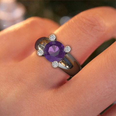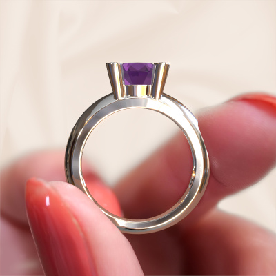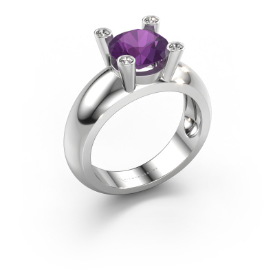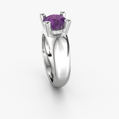 Are you looking for a special ring with an eye-catching single gemstone? How do you like this Tamara RND ring? This white gold Tamara RND ring is set with a beautiful 8 mm round amethyst. The amethyst is carefully selected by our amethysten suppliers. Subsequently, these gemstones are then set by our goldsmith according to ancient tradition. The ring will then be polished to perfection creating a unique ring with a stunning amethyst. Created especially for you. The best part of this special ring is that you can customize it to your own liking. Your style, your choice, your ring. On top of that, your trendy white gold ring will be made by hand with eco-friendly materials! Please feel free to easily customize the ring, using our online tool.By using a combination of the latest modern techniques, combined with ancient crafting, we can make all our rings in our own studio. Each jewel is made to order. This is advantageous because we can offer you a price you won't find anywhere else.To make it easier for you, we offer a 30 day return policy. Check our terms and conditions.