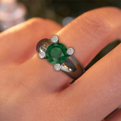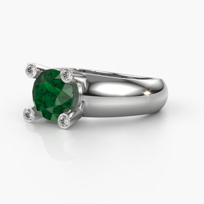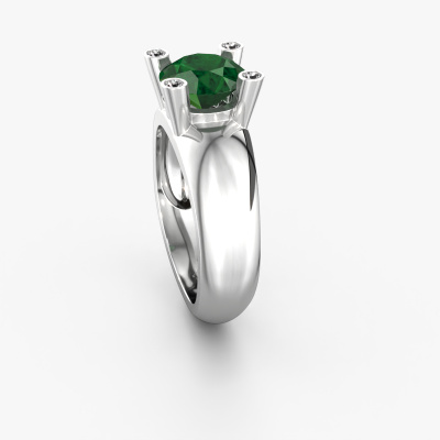 Are you looking for a special ring with an eye-catching single gemstone? How do you like this Tamara RND ring? This white gold Tamara RND ring is set with a beautiful 8 mm round emerald. The emerald is carefully selected by our emeralds suppliers. Subsequently, these gemstones are then set by our goldsmith according to ancient tradition. The ring will then be polished to perfection creating a unique ring with a stunning emerald. Created especially for you. The best part of this special ring is that you can customize it to your own liking. Your style, your choice, your ring. On top of that, your trendy white gold ring will be made by hand with eco-friendly materials! Please feel free to easily customize the ring, using our online tool.By using a combination of the latest modern techniques, combined with ancient crafting, we can make all our rings in our own studio. Each jewel is made to order. This is advantageous because we can offer you a price you won't find anywhere else.To make it easier for you, we offer a 30 day return policy. Check our terms and conditions.