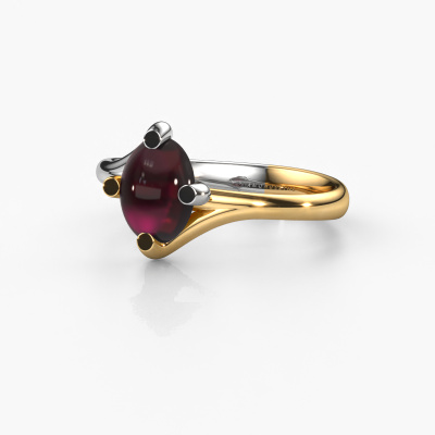 In this photo the white gold Nora ring is set with a cabochon garnet. Cabochon means a garnet is shaped first, not faceted, into a specific shape, such as a drop, heart or oval cabochon. Subsequently, it is polished until the gemstone has a orb shaped surface. A cabochon gemstone is a stunning, classy eye-catcher that matches perfectly with a contemporary as well as a vintage style. Our expert goldsmiths shape the graceful ring to perfection which makes it unique. The cabochon garnet is set so its unique qualities are strengthened. How do you like this trendy white gold ring? Simply customize this Nora ring, using our online tool. Subsequently, your personal graceful Nora ring will be made by hand by our goldsmiths. Precious metals and gemstones can be customized to your liking. Do you have specific preferences which are unavailable in our online tool? Please feel free to contact us. We will customize your personal trendy ring to your liking.After receiving your order, our goldsmiths will passionately start the creative process of making your ring in our own studio. Because we don't have a big stockpile, these costs will not be passed on to you. Our pricing is proof of that! We offer top quality jewels at lowest price, guaranteed.To make it easier for you, we offer a 30 day return policy. Check our terms and conditions.