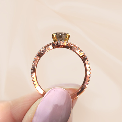 How would you describe your own style? Are you looking for something uniquely different? This graceful rose gold Jeni ring is astonishing! Simply customize to your or her own liking. This ring is set with brown diamond. These brown diamonds have been carefully selected because your ring must be adorned with nothing but the most beautiful gemstone. Wouldn't you agree? Our expert goldsmith will create your ring in our own crafting studios, where the brown diamond will be set with care. The ring will then be polished to perfection to give it that extra sparkle. It's a perfect ring for a woman of excellent taste!The best part of this graceful ring is that you can customize it to your own liking. Your style, your choice, your ring. On top of that, your vintage rose gold ring will be made by hand with eco-friendly materials! Please feel free to easily customize the ring, using our online tool.By using a combination of the latest modern techniques, combined with ancient crafting, we can make all our rings in our own studio. Each jewel is made to order. This is advantageous because we can offer you a price you won't find anywhere else.To make it easier for you, we offer a 30 day return policy. Check our terms and conditions.
