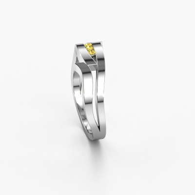 This ring is called Amelie. It is made of 14 Carat white gold and is set with 1.7 mm yellow sapphire. Are you looking for a unique white gold ring with a modern appearance? Then this is the ring for you. Simply customize to your or her liking. Perfect for a modern, contemporary woman! This elegant ring is adorned with stunning yellow sapphire. It was carefully selected because your ring must be adorned with nothing but the most beautiful gemstones. Our expert goldsmith will create your ring in our own studio, where the yellow sapphire will be set with great care. The ring will then be polished to perfection to create a beautiful ring. Because we design and deliver our own rings, we can offer you a ring at a price you won't find anywhere else. A ring is made to order, which helps prevent excess supplies, so we can make you a great price offer. We understand it feels risky, buying your ring online, but we will gladly assist in the designing process, taking your budget into consideration.New jewelry designs are added to our online collection daily. Our team of passionate designers strive to create extraordinary and diverse designs. Have you seen a ring you like? Please feel free to contact us. Based on a good price/ quality ratio, we will make you an offer you can't refuse!To make it easier for you, we offer a 30 day return policy. Check our terms and conditions.