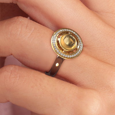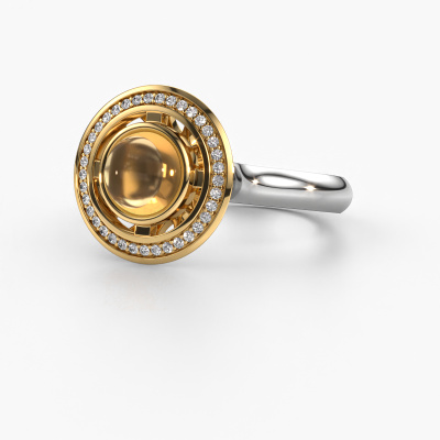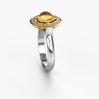 In this photo the white gold Salima ring is set with a cabochon citrin. Cabochon means a citrin is shaped first, not faceted, into a specific shape, such as a drop, heart or round cabochon. Subsequently, it is polished until the gemstone has a orb shaped surface. A cabochon gemstone is a stunning, classy eye-catcher that matches perfectly with a contemporary as well as a vintage style. Our expert goldsmiths shape the special ring to perfection which makes it unique. The cabochon citrin is set so its unique qualities are strengthened. How do you like this design white gold ring? Simply customize this Salima ring, using our online tool. Subsequently, your personal special Salima ring will be made by hand by our goldsmiths. Precious metals and gemstones can be customized to your liking. Do you have specific preferences which are unavailable in our online tool? Please feel free to contact us. We will customize your personal design ring to your liking.After receiving your order, our goldsmiths will passionately start the creative process of making your ring in our own studio. Because we don't have a big stockpile, these costs will not be passed on to you. Our pricing is proof of that! We offer top quality jewels at lowest price, guaranteed.To make it easier for you, we offer a 30 day return policy. Check our terms and conditions.