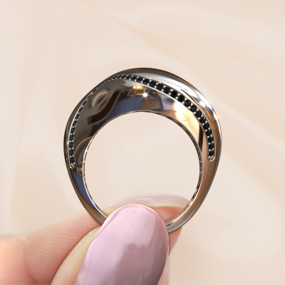 This is a stunning tasteful white gold Phyliss ring. It is set with black diamond. A designer ring, fit for classy women. The ring is designed by our own expert goldsmiths. In our artisan studio, we use a combination of the latest techniques and ancient traditional craftsmanship, so we are able to create a perfectly designed ring. Our expert goldsmiths strive for perfection so they won't stop until a perfect ring, a true work of art, is created. A unique ring which matches your own style. The best part of this tasteful ring is that you can customize it to your own liking. Your style, your choice, your ring. On top of that, your design white gold ring will be made by hand with eco-friendly materials! Please feel free to easily customize the ring, using our online tool.After receiving your order, our goldsmiths will passionately start the creative process of making your ring in our own studio. Because we don't have a big stockpile, these costs will not be passed on to you. Our pricing is proof of that! We offer top quality jewels at lowest price, guaranteed.To make it easier for you, we offer a 30 day return policy. Check our terms and conditions.